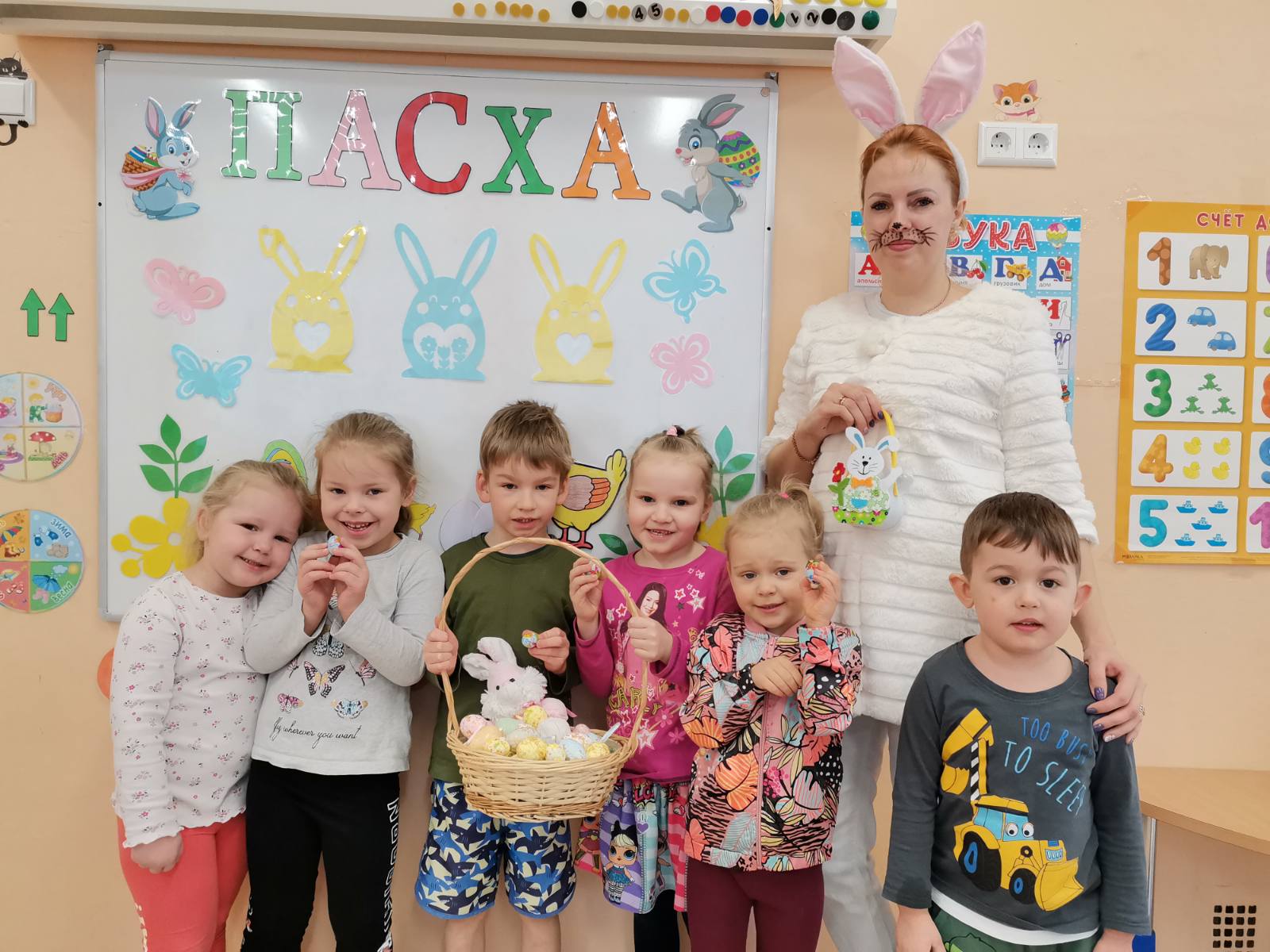 Наши дети должны знать историю своей страны, историю и традиции праздников (государственных и религиозных). Детям интересно узнавать о празднике с помощью рассказов и стихов. Пасха — самый главный христианский праздник. В это день верующие отмечают воскресение из мёртвых Иисуса Христа. К детям в нашем саду приходил в гости зайчик. Ребятишки искали яйца в группе, танцевали с зайкой и на последок раскрашивали картинки. Праздник всем очень понравился и с нетерпением ждем Зайку к нам в гости в следующем году!