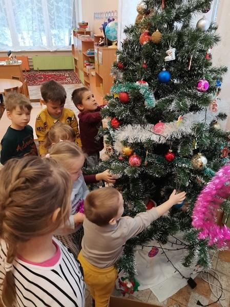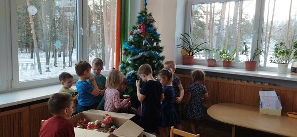 В ожидании праздников не забыли принарядить наши групповые елочки украшениями. Елочные украшения дети мастерили в разных техниках.