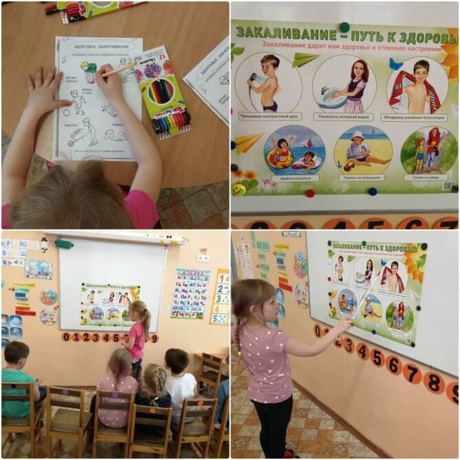 Во 2-ой группе дети вели беседу о чистке зубов, о закаливании и о строении тела человека.