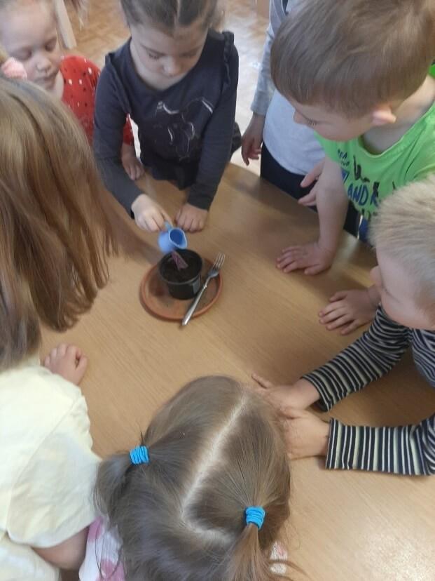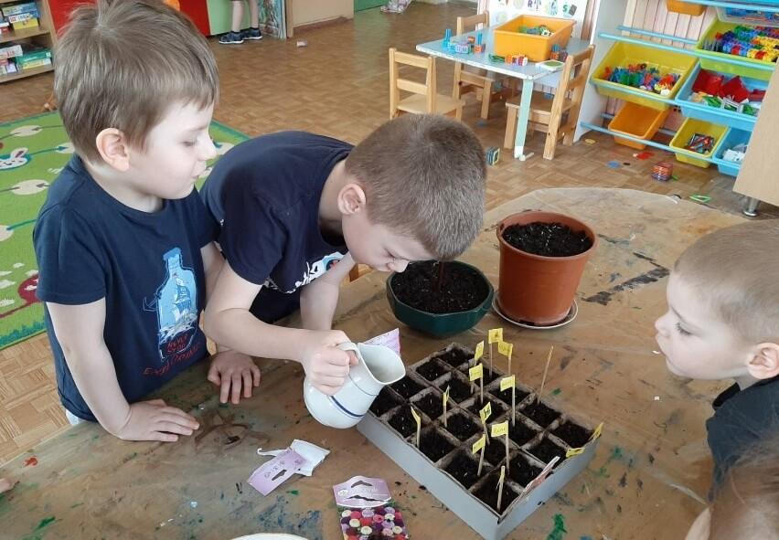 В группах старшие дети сажали каждый своё растение и в течении месяца следили за ростком, наблюдая изменения в росте.