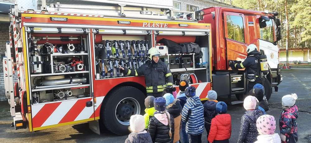 04.10 Tulest targem – проект, в котором дети знакомятся с профессией пожарного, узнают, что нельзя играть с огнем, как надо себя вести, если увидели пожар и на какой номер звонить. Дети детского сада Muinasjutt, прекрасно знаю номер 112.